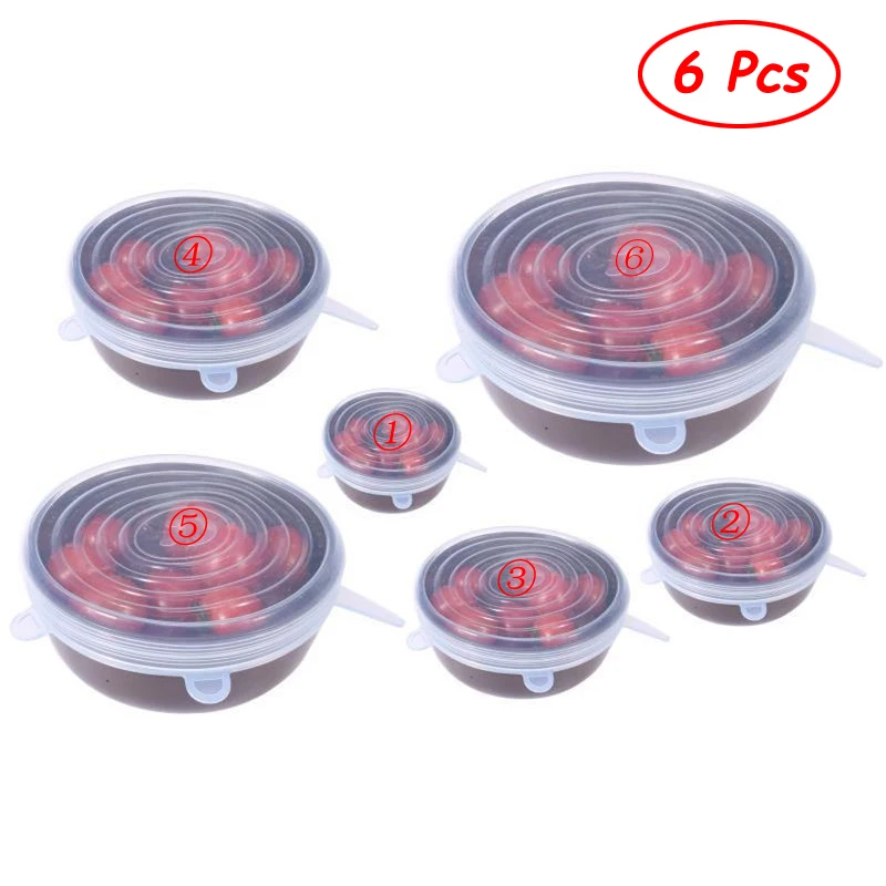 6 шт./компл. силиконовые эластичные крышки для свежей пищи универсальная многоразовая всасывающая крышка-чаша сковорода фруктовая кружка пищевая свежая крышка 25