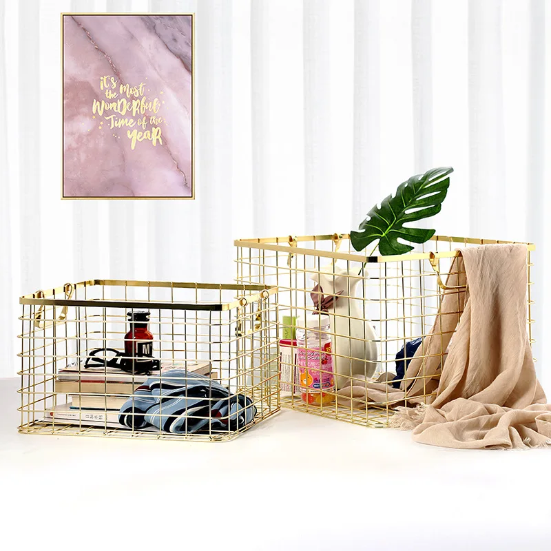 Nordic стиль металлическая Роза Золотая корзина для хранения банная Одежда Косметика корзина для хранения офис разное Органайзер Домашний Де...