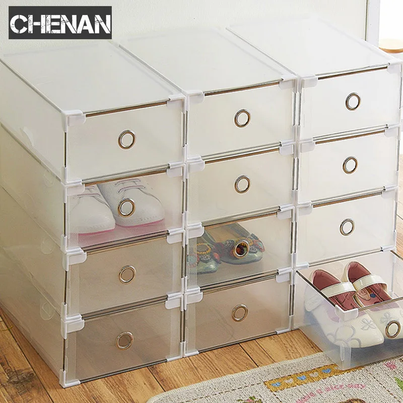 6 шт./компл. органайзер для обуви ящика прозрачный Пластик ящик для хранения обуви прямоугольник PP утолщенной обувь Организатор Ящика обуви ...