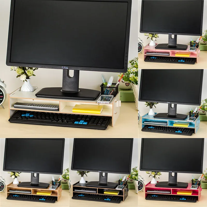 Собранная компьютерная стойка для монитора, 3 слоя дерева, офисный стол, органайзер для ручки/клавиатуры/канцелярских принадлежностей, лоток для ноутбука 48*20*11,5 см