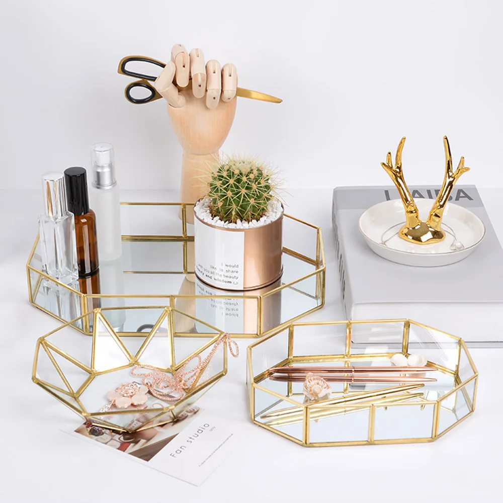 YOLALA Nordic стиль стекло медь Геометрия корзины для хранения коробка простота дома Организатор ювелирных изделий цепочки и ожерелья десерт