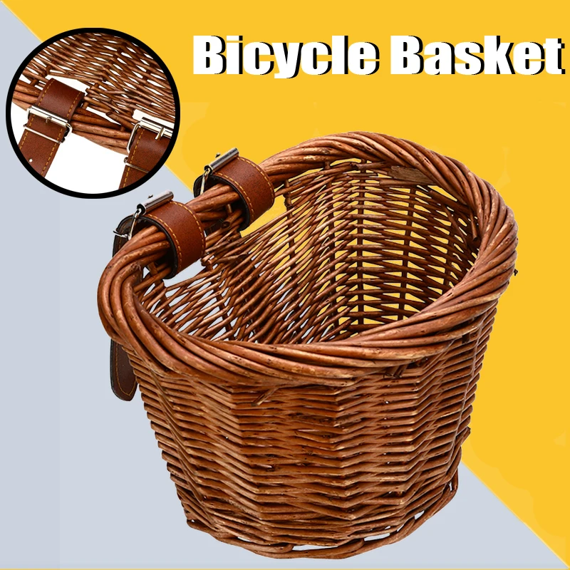 Vintage Handmade Rattan Bicycle Basket Hanging Organizer Bag Wicker Straw Storage Backpack Nordic Girls Kids Room Decor