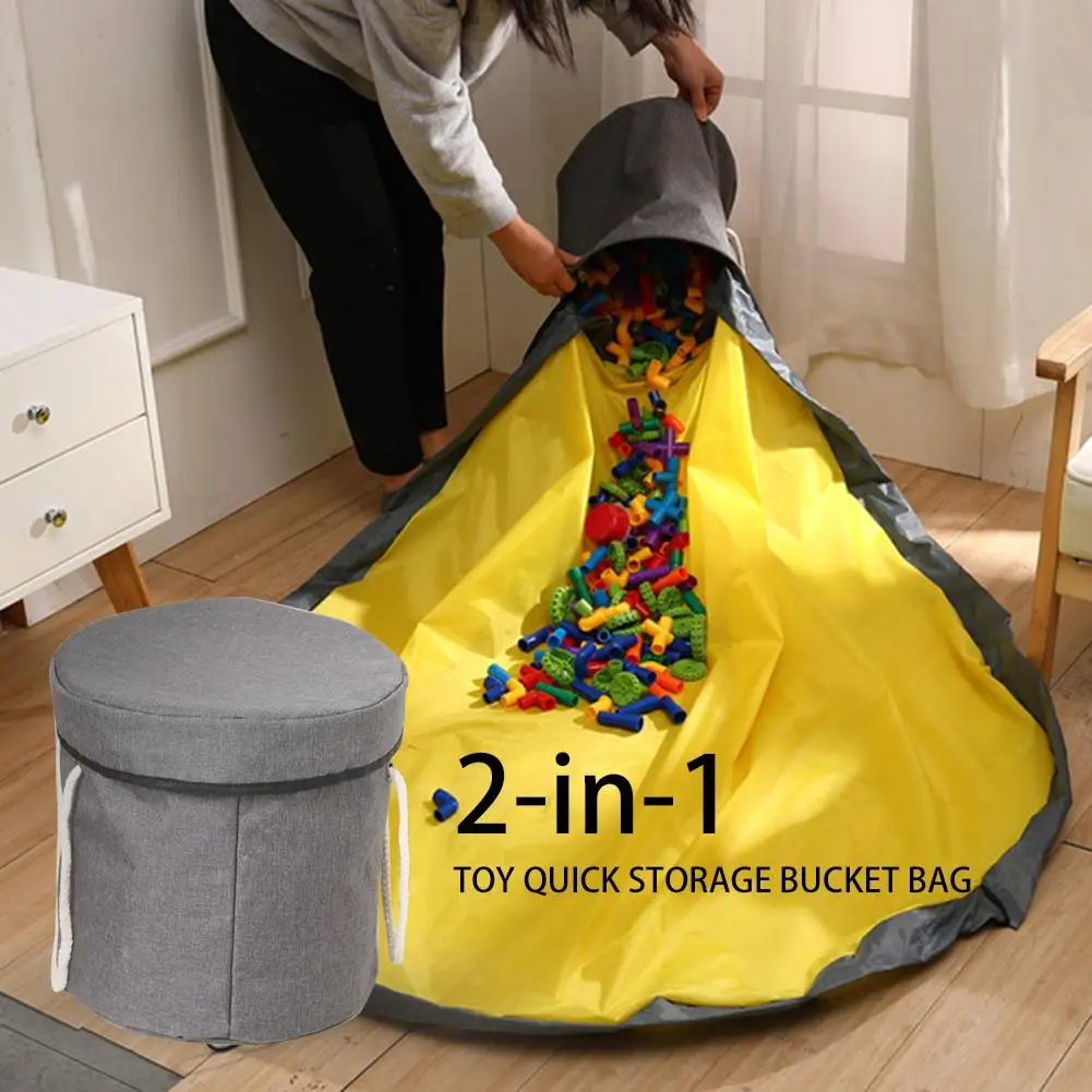 2 in 1 Children Toy Slide-in Storage Basket Clean Up Bag Large Capacity Play Mat Washing Dirty Clothes Big Basket Organizer