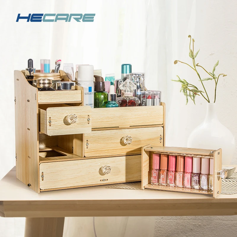 HECARE деревянный ящик для хранения косметики Экологичная деревянная доска макияж Органайзер маленький домашний офис тумба с выдвижным ящико...