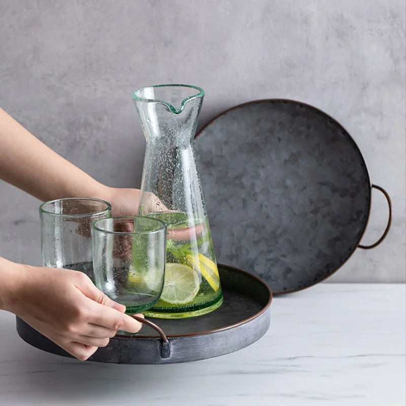 Европейская круглая железная тарелка с ручками, винтажный металлический поднос для хлеба, украшение дома, для сада, ресторана, стола, фотографирования
