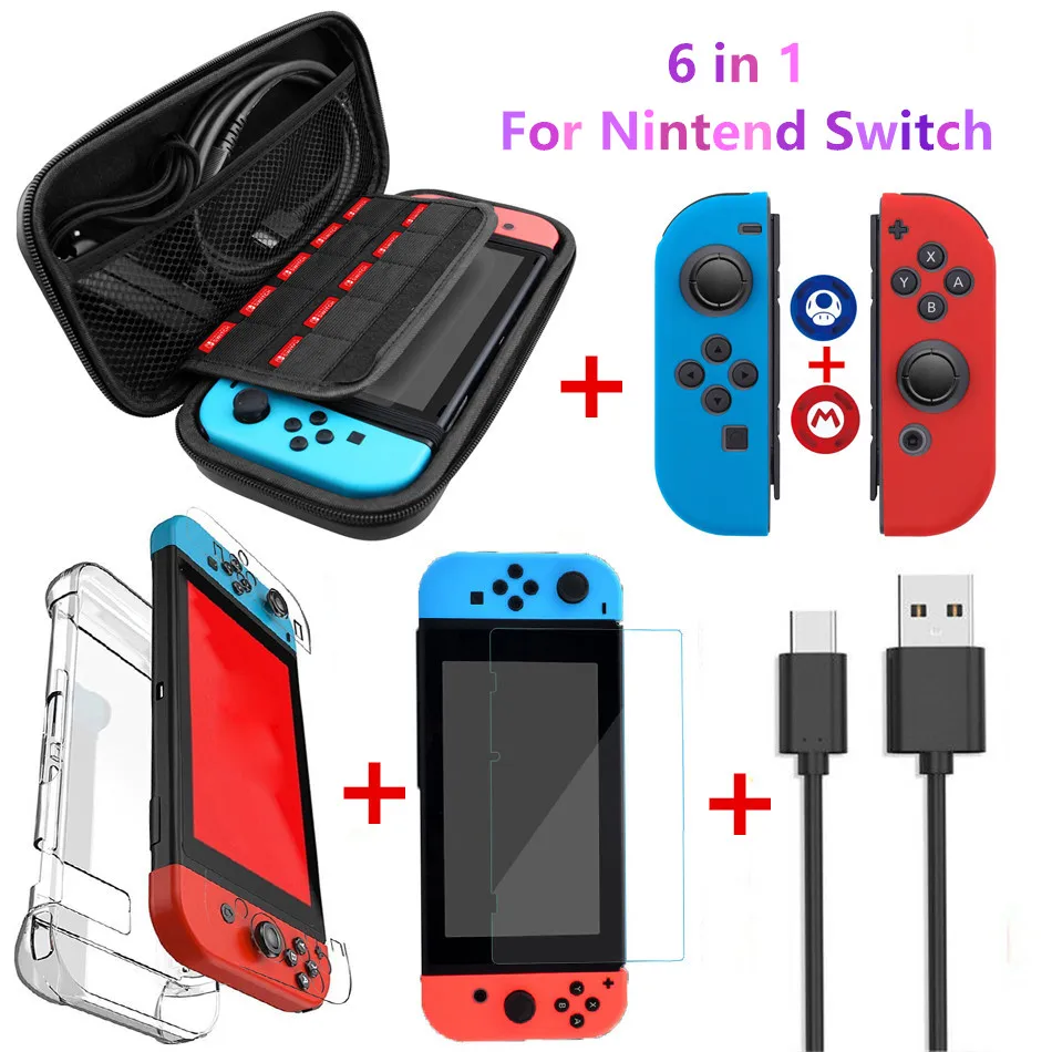 Набор аксессуаров для nintendo Switch 6 в 1, черный, синий, дорожная сумка для переноски, защитный чехол для экрана, зарядный кабель