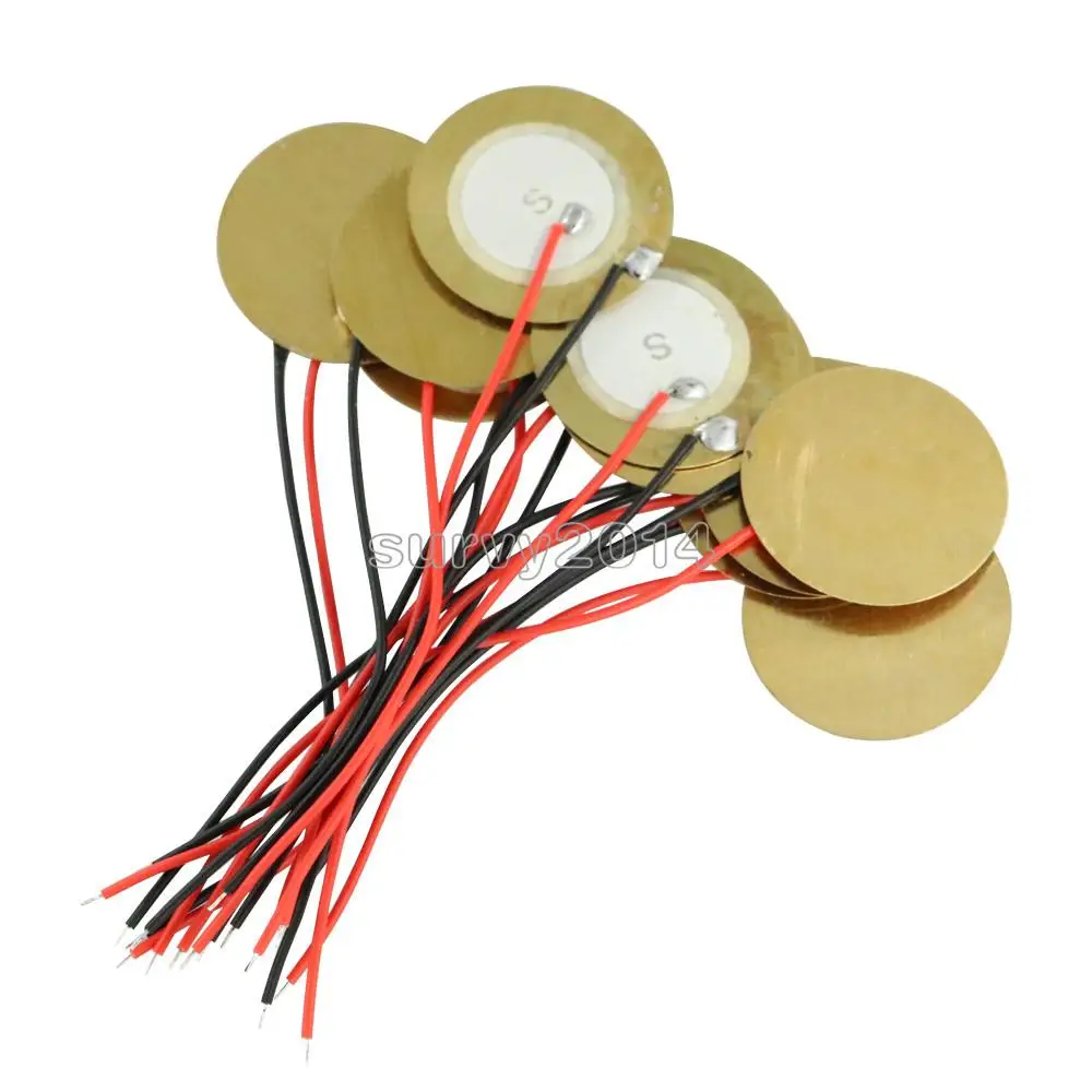 10 шт. 20 мм пьезо элементы эхолот датчик триггер барабанный диск 6,5 кГц + провод медь