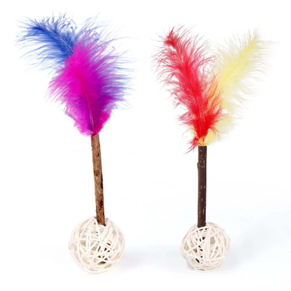 Забавная игрушка в виде кота с колокольчиком и пером, Интерактивная игрушка для питомцев, для котенка, котенка, натуральный ротанговый шар, игрушка для кошки, новинка 2018