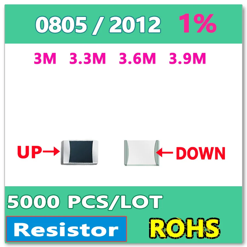 JASNPROSMA Ом 0805 F 1% 5000 шт 3 м 3,3 М 3,6 м 3,9 м smd 2012 резистор