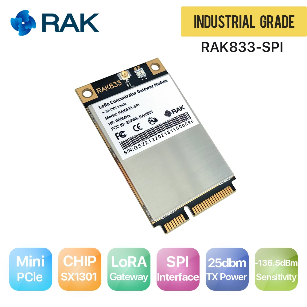 RAK833 SPI SX1301Chip, 868/915 МГц, промышленный мини PCIe LoRa шлюз концентратор модуль, поддержка SPI интерфейс