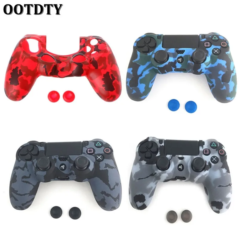 3-в-1 мягкие Нескользящие Камуфляж Силиконовый чехол кожи чехол + 2 Thumbsticks Caps для sony PS4 Pro Slim контроллер