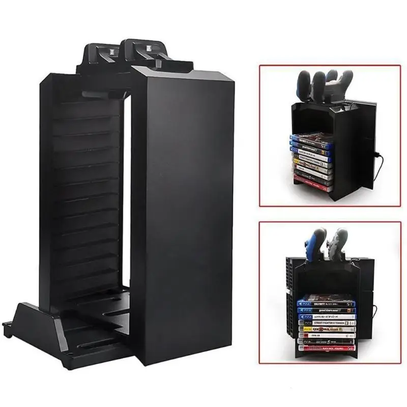 Многофункциональный вертикальный стоячий охлаждающий вентилятор с игровой диск станция для хранения с двойным зарядным устройством для PS4...