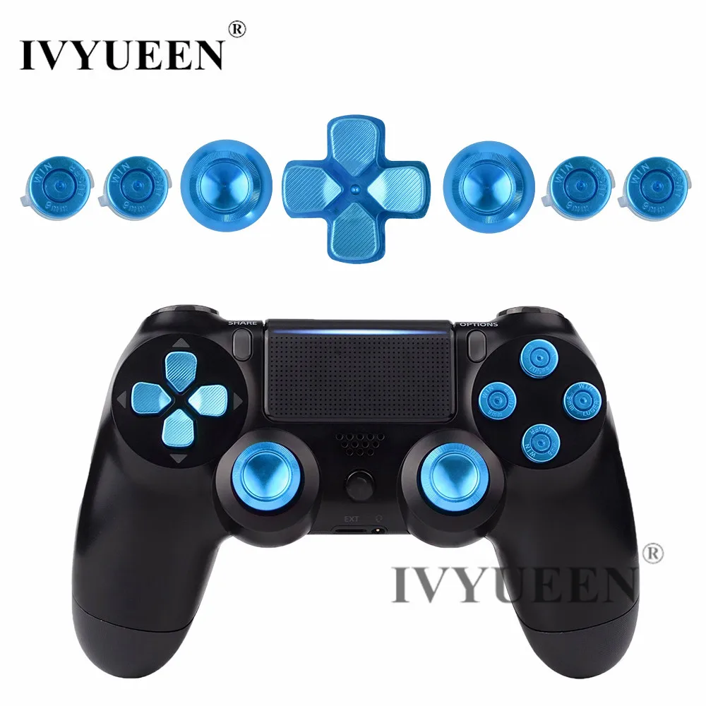 Ivyueen для Игровые приставки 4 PS4 Pro Slim контроллер синий Алюминиевый аналоговых пальца палочки + металл Dpad 9 мм пуля кнопки Mod Kit