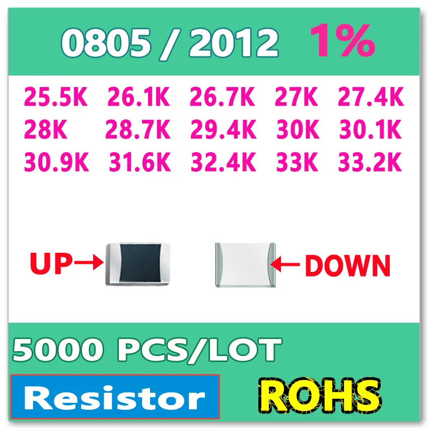 JASNPROSMA Ом 0805 F 1% 5000 шт 25,5 K 26,1 K 26,7 K 27 K 27,4 K 28 K 28,7 K 29,4 K 30 K 30,1 K 30,9 K 31,6 K 32,4 K 33 K 33,2 K smd 2012