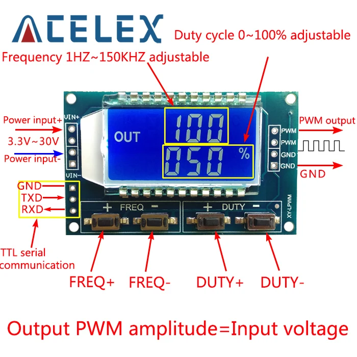 Генератор сигналов PWM частота импульсов рабочий цикл регулируемый модуль ЖК-дисплей Дисплей 1Hz-150Khz 3,3 V-30 V PWM плата Модуль гибкий кабель