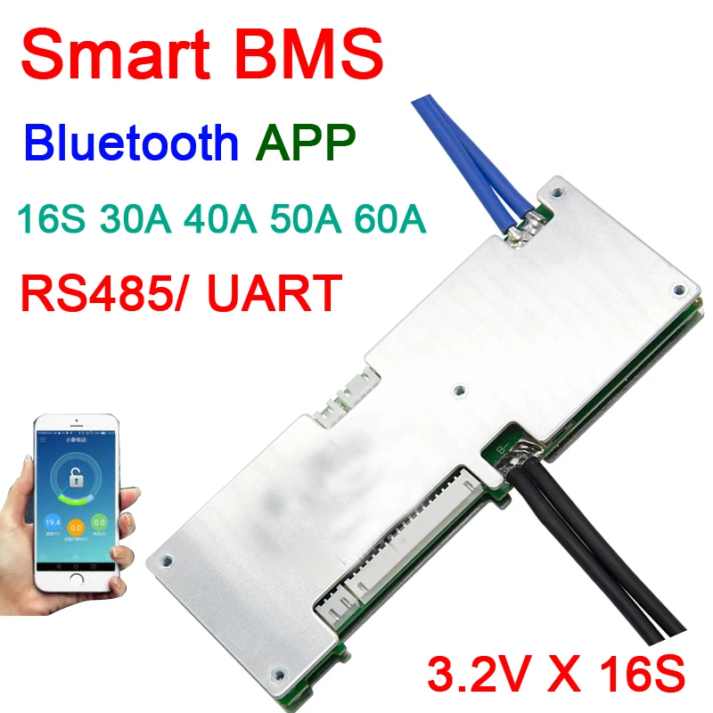 2019 16S 48V 30A-60A smart Lifepo4 литий-железо-фосфатная плата для защиты батареи с балансом Bluetooth APP 485 UART monitor