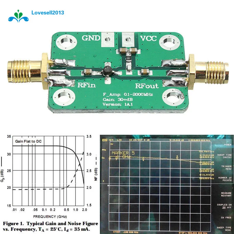 0,1-2000 МГц РЧ широкополосный усилитель широкополосный модуль приемник 30 дБ малошумный LNA