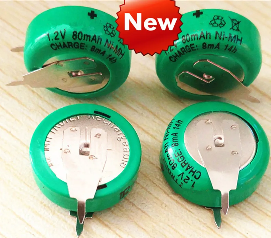 Новая кнопка 1,2 V 80mAh никель-металл hydride перезаряжаемая батарея 80mAh 1,2 V с таймером для пайки НОГ 40mAh