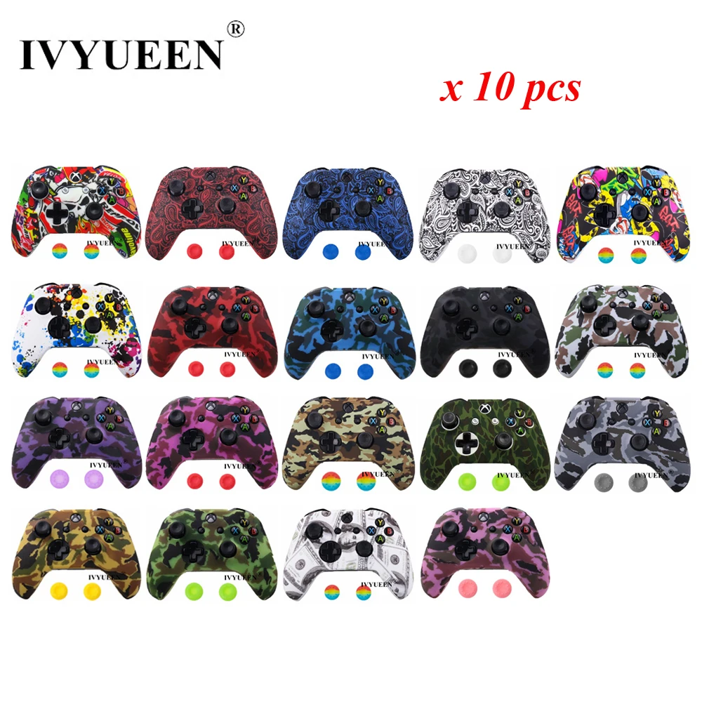 IVYUEEN 10 шт. силиконовый защитный кожи для XBox One X S тонкий контроллер протектор чехол с Силиконовый захват большого пальца шапки