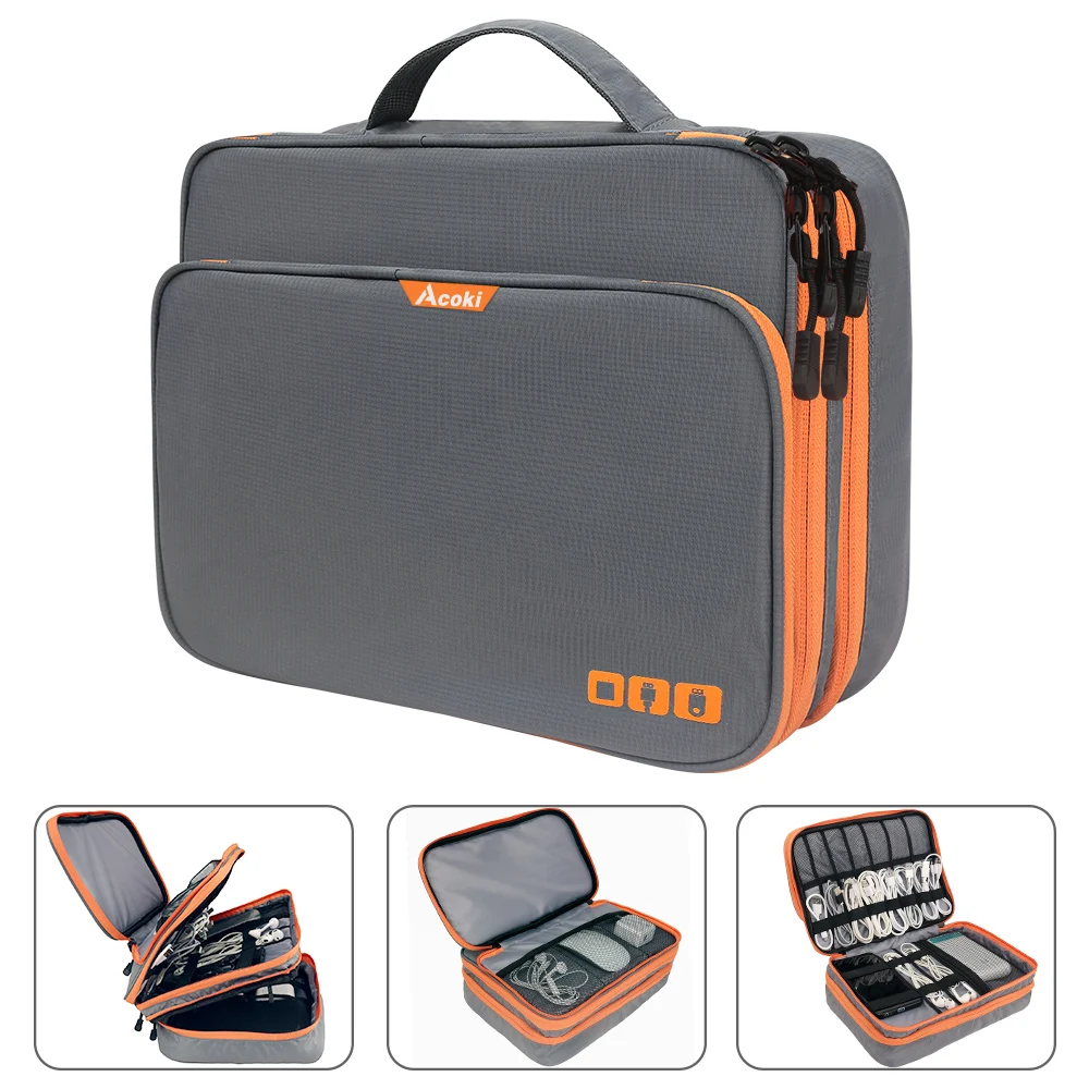 Трехслойный органайзер для электронных аксессуаров, сумка для хранения с передним карманом, дорожный органайзер для кабеля, большая емкость для iPad