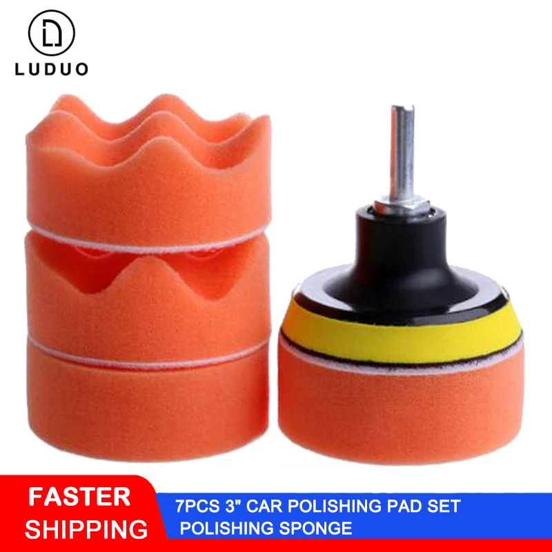 LUDUO 7 шт . 3 " Автомобильный полировщик набор полировальных подушечек полировальная губка колесо буфера воска для фар полировка M10 аксессуары для ухода за краской