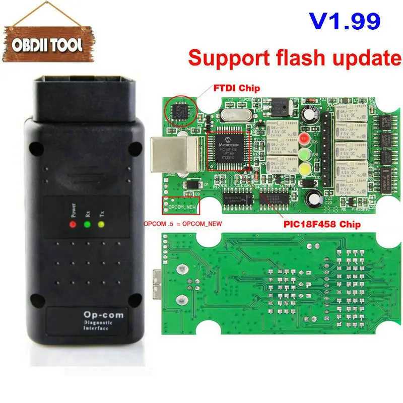 Новый OPCOM V1.99 для Опель OP COM OBD2 диагностический сканер с реальными PIC18f458 OP-COM Opel для диагностики флэш-прошивки
