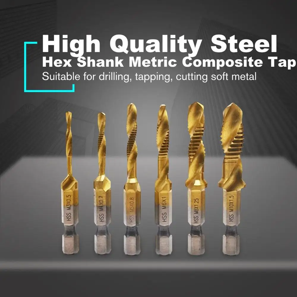 6 шт шестигранный хвостовик метрический 2-в-1 композитный коснитесь набор высокого Скорость Сталь многофункциональный композитный коснитесь шестигранный хвостовик сверла набор