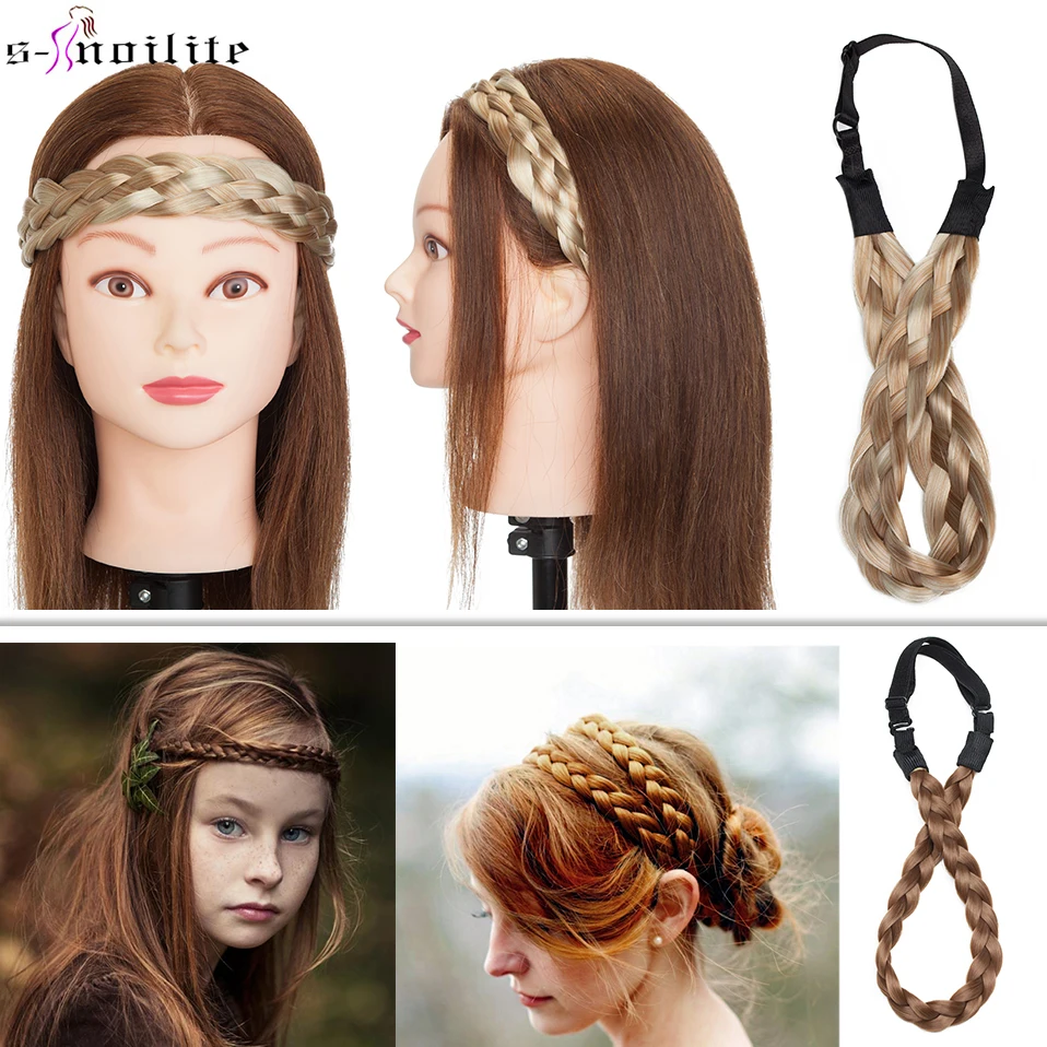 S-noilite 3 размера повязка на голову, косички, волосы с регулируемым поясом, плетеная повязка на голову, богемный стиль, синтетические женские волосы