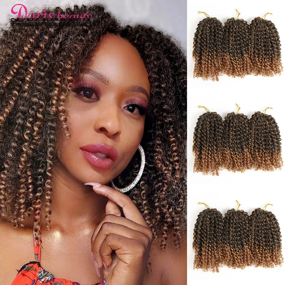 Doris beauty, 8 дюймов, афро, вязанные крючком волосы, косички Марли, Омбре, косички для наращивания, синтетические, вязанные крючком косички для же...