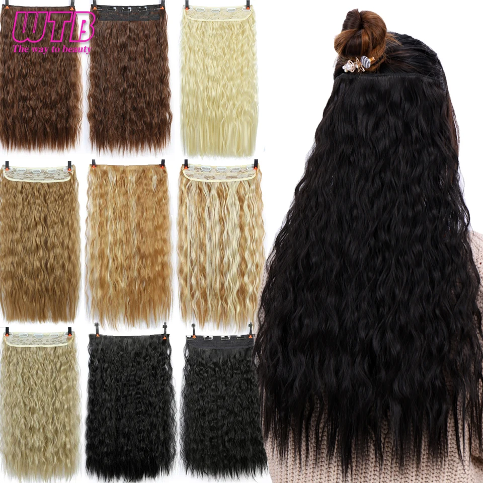 Длинные Синтетические волосы для наращивания WTB, черная Кукуруза кудрявая, 5 шт., накладные волосы на клипсе для женщин, натуральные термостойкие искусственные волосы