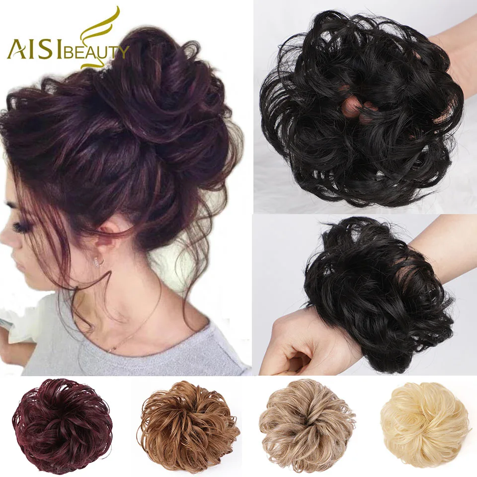 AISI красота синтетические волосы шиньон пончик чёрный; коричневый вьющиеся волосы накладной пучок для волос шиньон эластичные резинка для в...