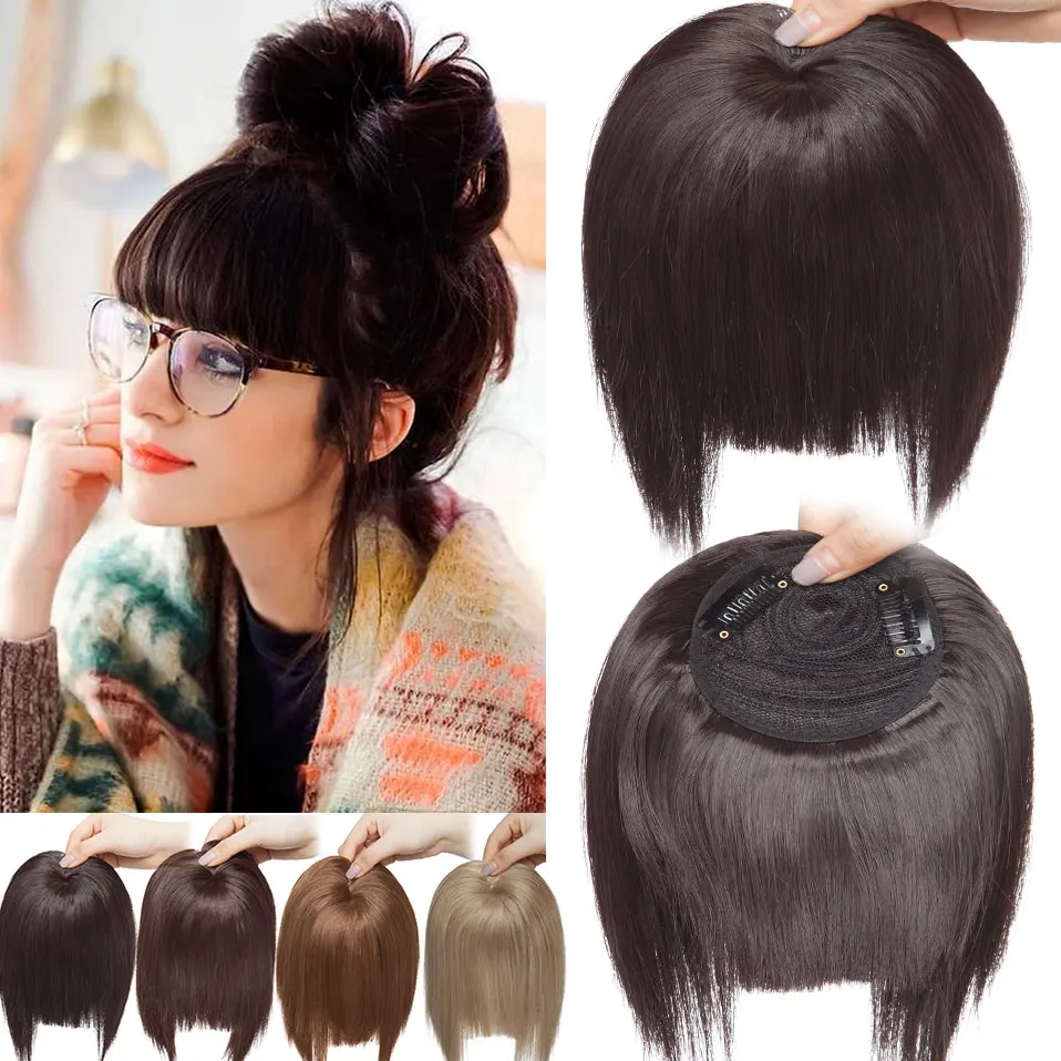 SNOILITE заколка для наращивания волос с бахромой накладные волосы челка синтетические коричневые тупые волосы челка клип на челку шиньон волосы для женщин