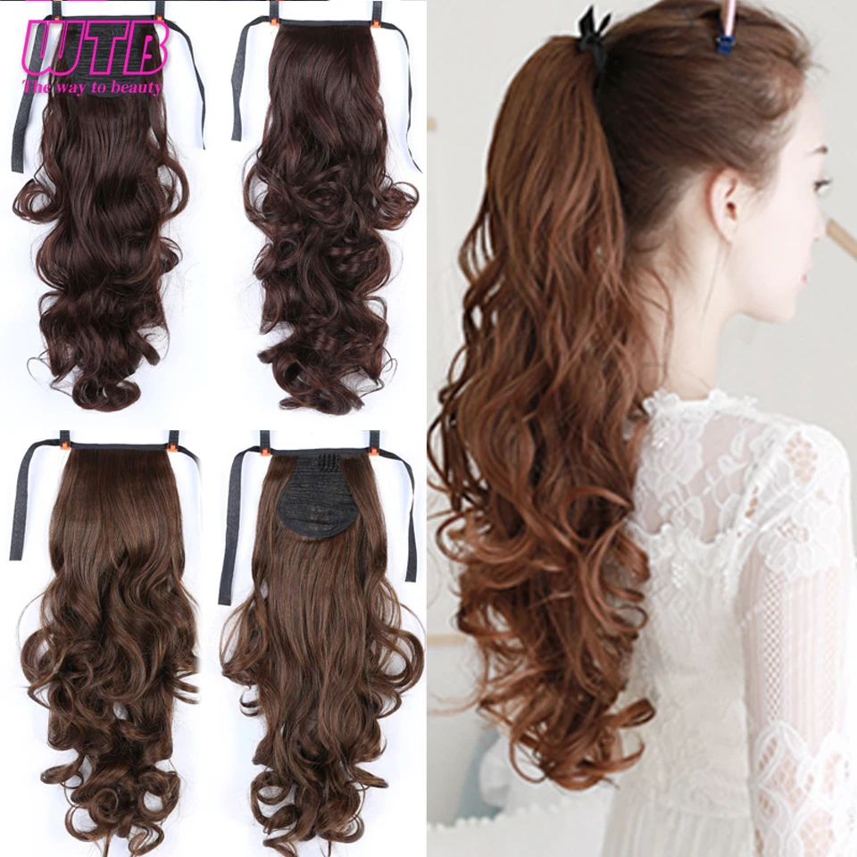 WTB волосы женские 22 дюймов длинные волнистые шнурок конский хвост термостойкие синтетические обертывания конский хвост Поддельные шиньоны