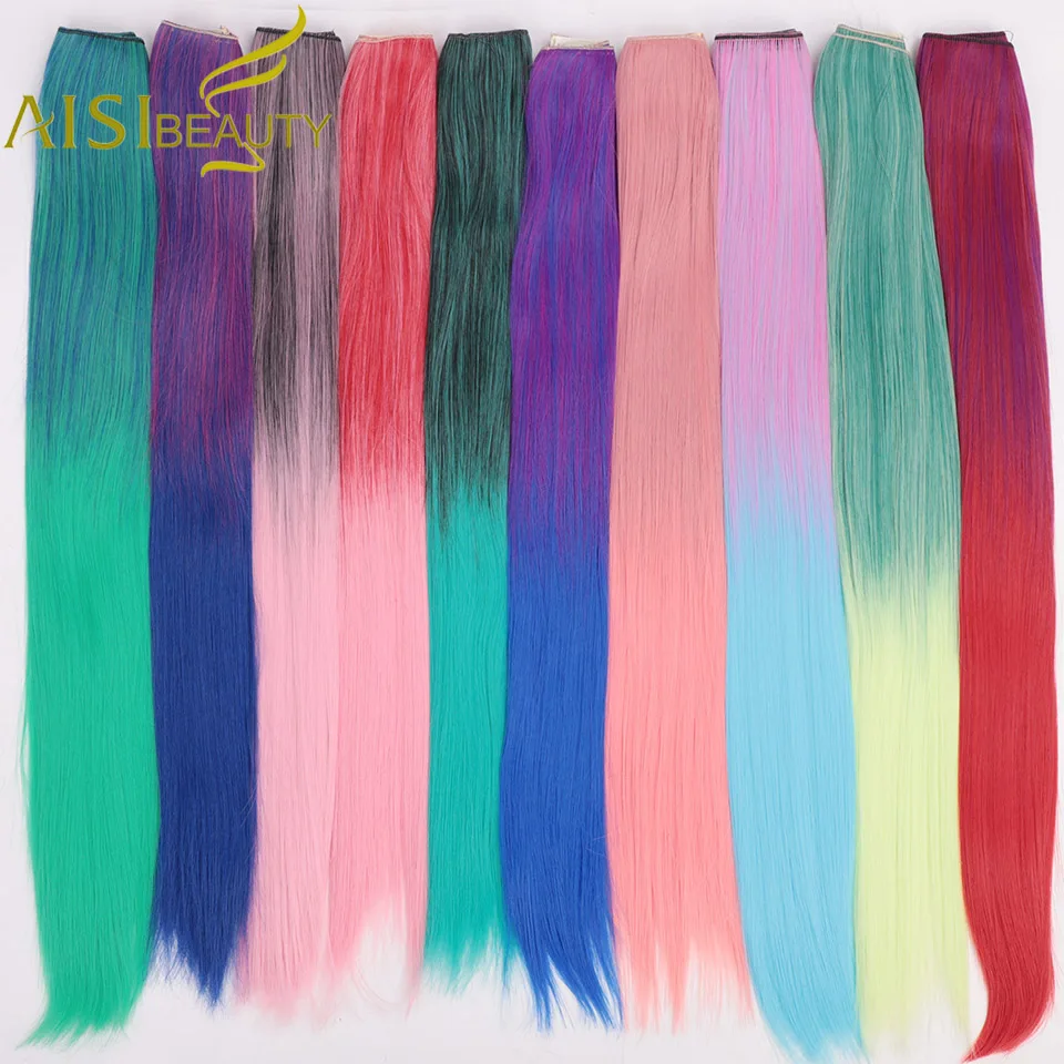 AISI BEAUTY клип один кусок синтетический длинный прямой Наращивание волос Омбре розовый фиолетовый 22 "Накладные радужные красочные женские