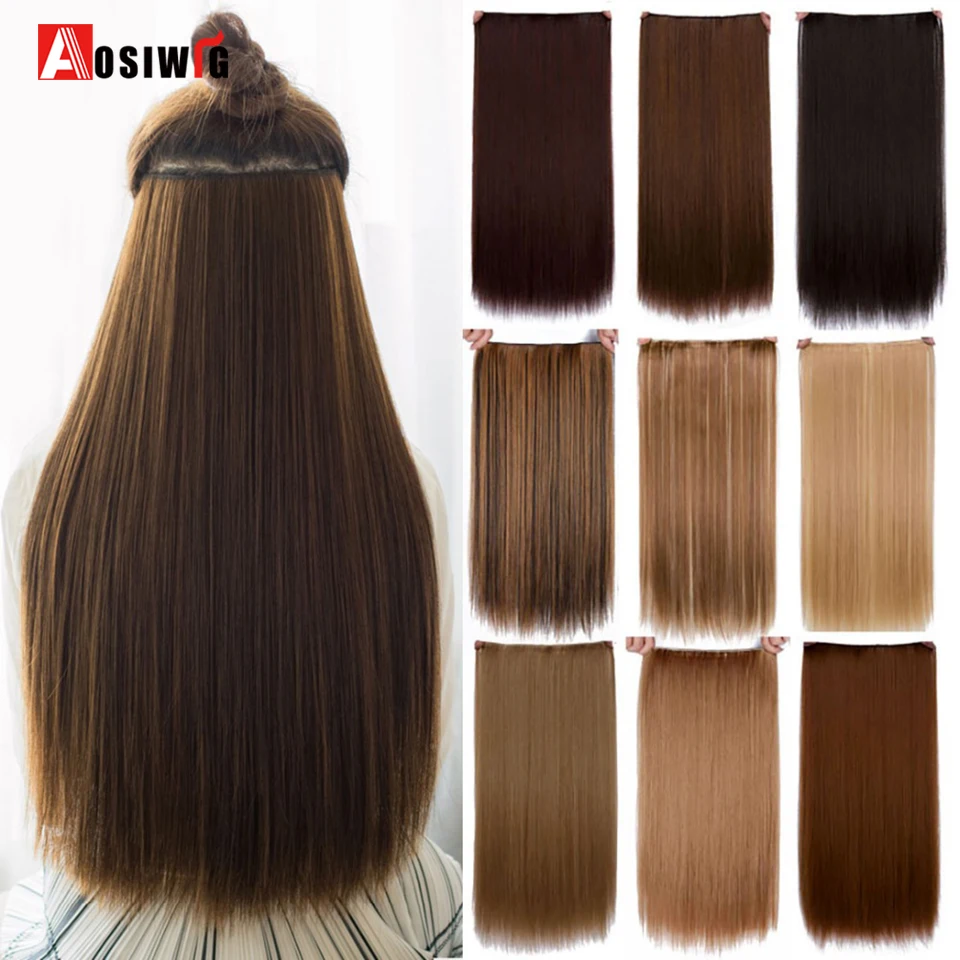 AOSIWIG, длинные прямые волосы на заколках, накладные волосы, синтетические натуральные волосы, Омбре, черный, коричневый, красный, для женщин, н...