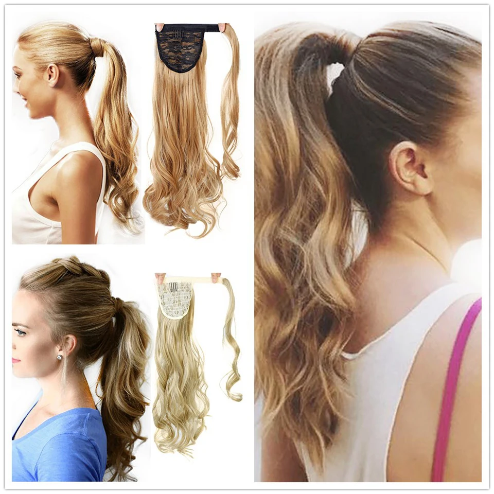 AOSIWIG синтетический длинный волнистый лента для хвостика шнурок обертывание вокруг волос хвост наращивание натуральный поддельные шиньоны ...