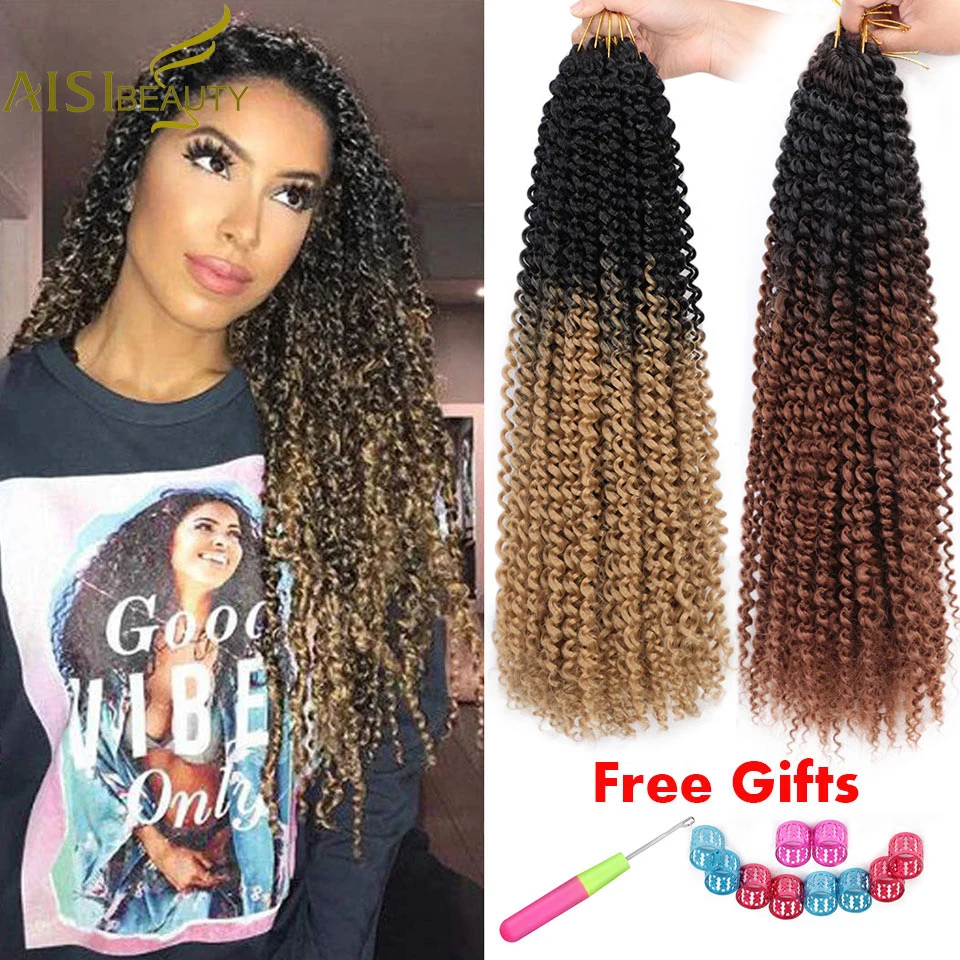 AISI красота страсть твист волосы Омбре волна воды богемные оплетка Freetress 18 дюймов крючком Синтетический Шнур наращивание волос