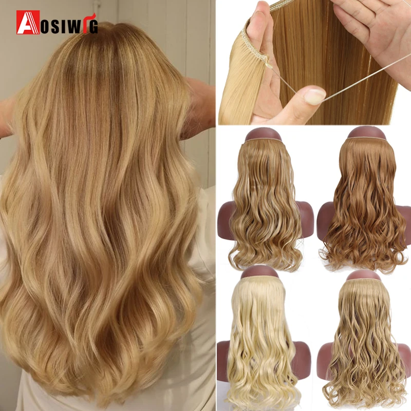 AOSIWIG 22 ''Длинные Серые светлые синтетические волосы термостойкие шиньоны рыбы линии Halo Невидимый волнистые волосы расширение