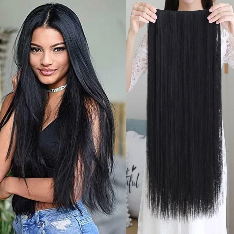 24 "Длинные прямые высокотемпературные синтетические накладные волосы на клипсах для женщин AOSIWIG