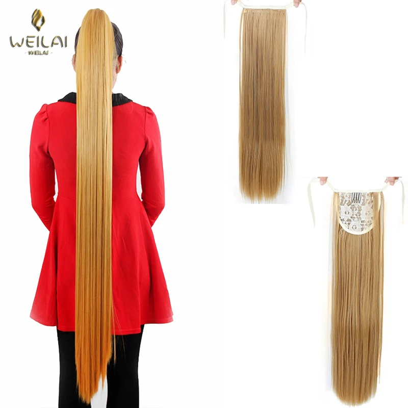 WEILAI 22 ''-32'' Супер длинный прямой зажим в хвосте накладные волосы конский хвост шиньон с заколками Синтетический хвост для наращивания