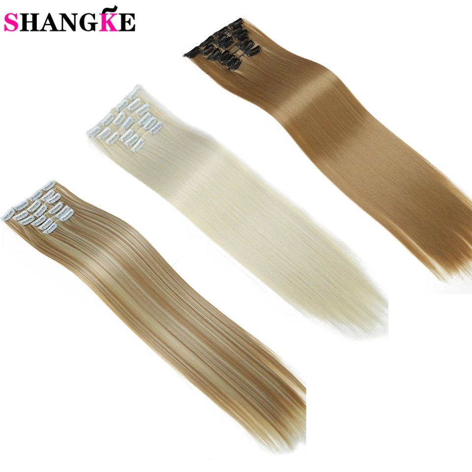 Шиньоны SHANGKE, 6 шт./компл., 22 дюйма, 16 клипс, Длинные прямые синтетические волосы для наращивания, Клипсы из высокотемпературного волокна