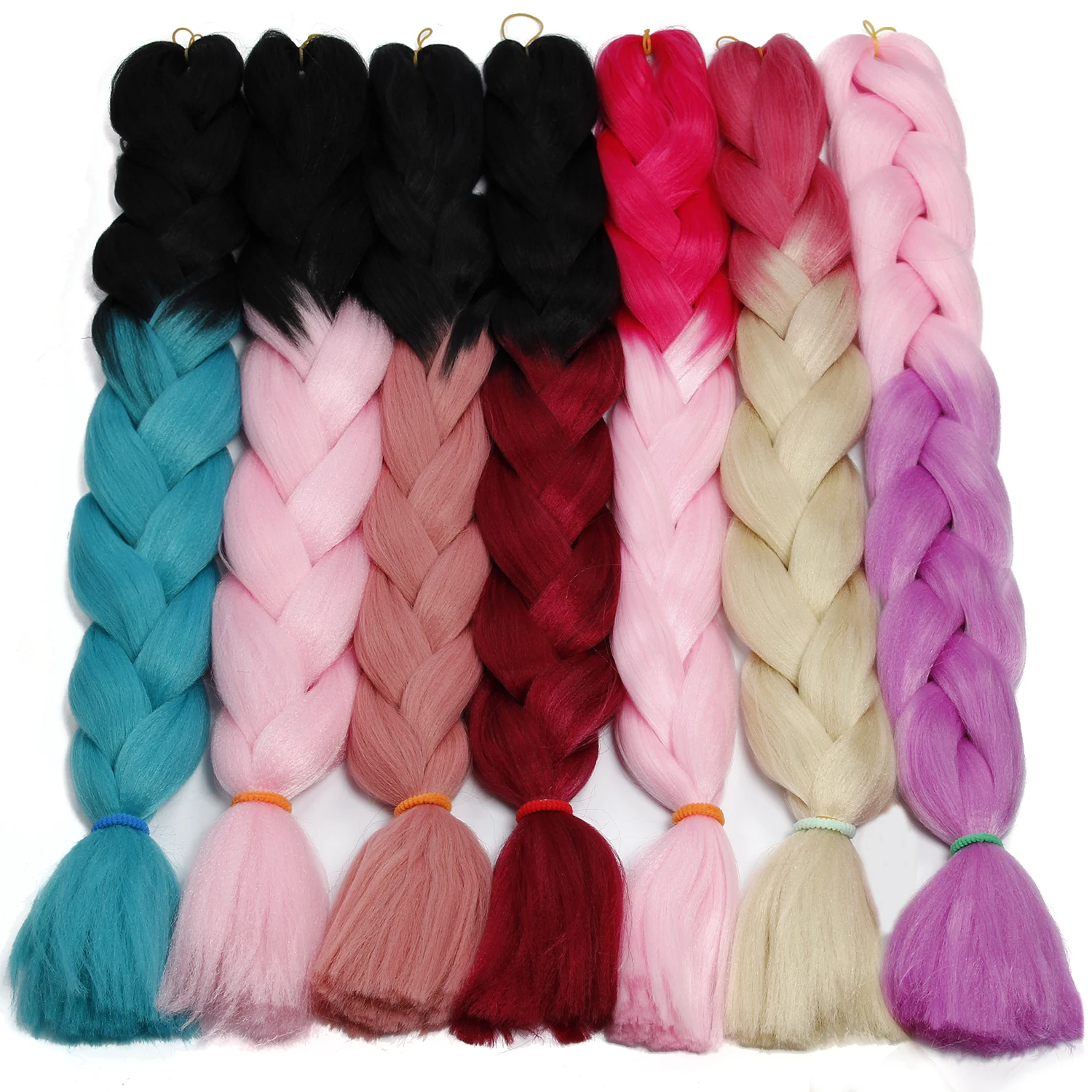 Синтетические волосы для наращивания, 82 дюйма, 165 г, вязанные крючком волосы, черные, розовые, фиолетовые, длинные огромные косы, вязанные крю...