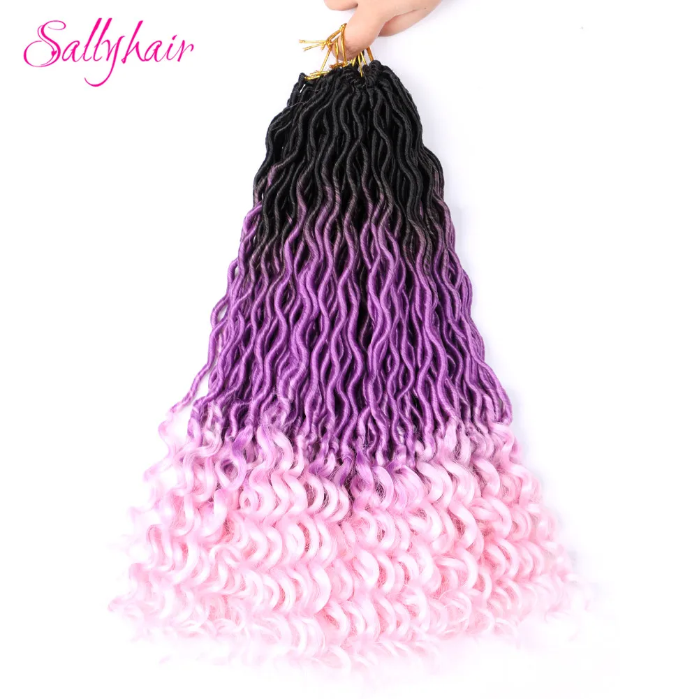 Sallyhair 24 пряди/упаковка Faux locs Curly крючком косы для наращивания волос синтетические мягкие Омбре плетение волос фиолетовый розовый свободный ...