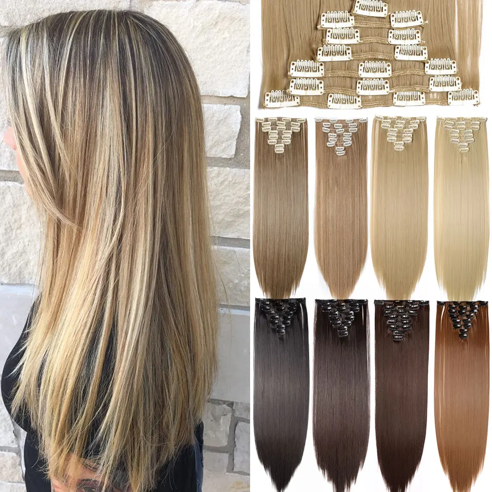 S-nolilite 42 цвета 22 "24" 26 "30" Длинные прямые 5 клипсов в одной части волос удлиняющие синтетические наращенные волосы шиньон для женщин