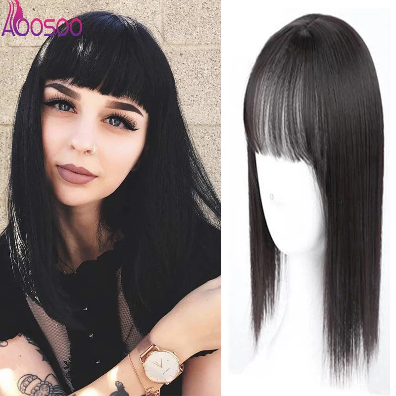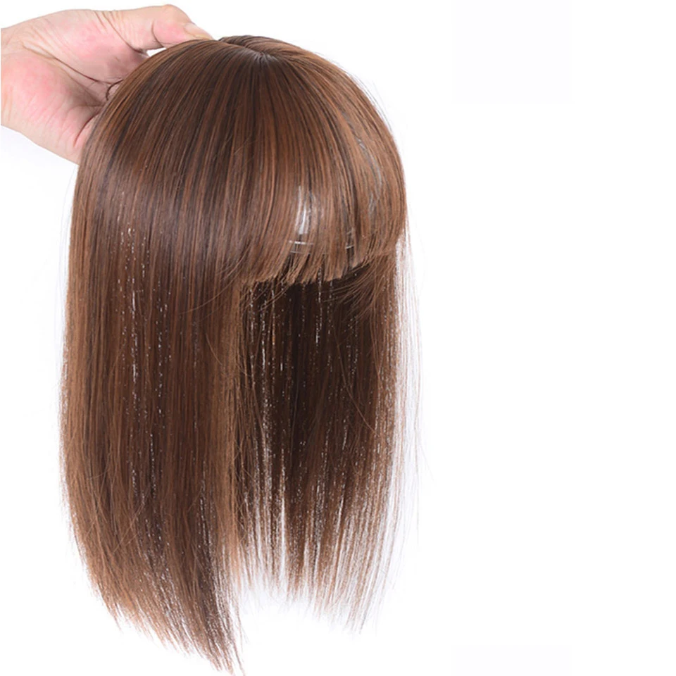 Женские прямые волосы естественного цвета, короткая челка, верхнее закрытие, заколки для волос, синтетические волосы на заколках, аксессуары для волос