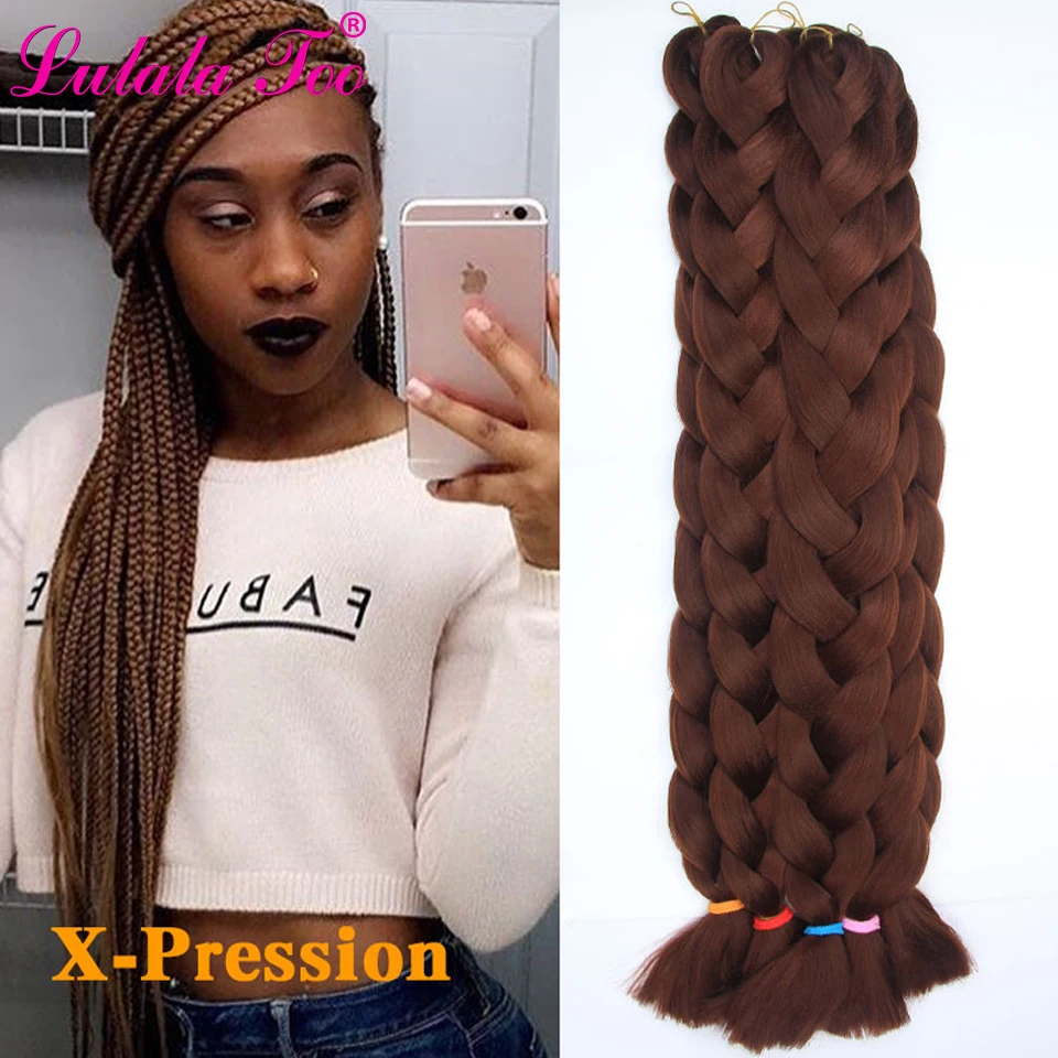 Синтетические волосы 82 дюйма 165 г вязанные крючком волосы Черный Коричневый Красный Розовый Фиолетовый Длинные Джамбо плетеные косы Xpression п...