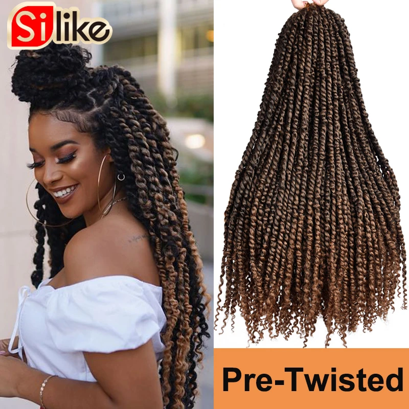 Silike 24 дюйма страсть твист крючком волосы Предварительно скрученные синтетические плетеные волосы наращивание Весна бомба твист для черных женщин оптом