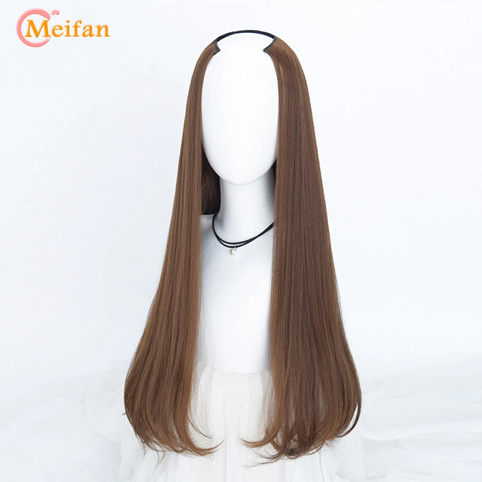 MEIFAN длинные прямые u-образные половина парик для женщин натуральные коричневые парики термостойкие синтетические накладные волосы