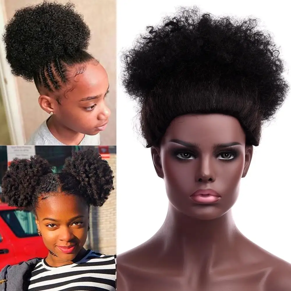 Весеннее солнце синтетический Puff афро короткие Kinky кудрявый шиньон волос булочка шнурок хвост обёрточная бумага шиньон Поддельные волос