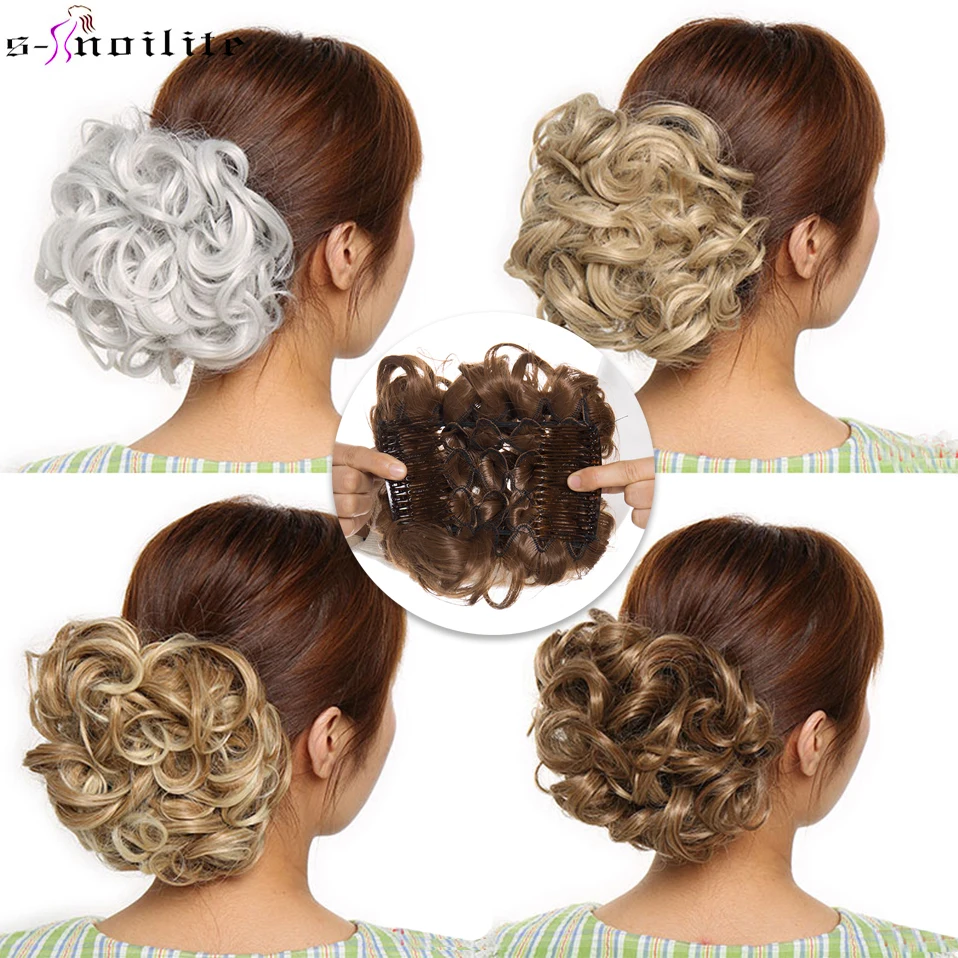 S-noilite 1 шт. 14 цветов короткие синтетические волосы большой Бун шиньон два пластиковых гребень зажимы в наращивание волос аксессуары для воло...